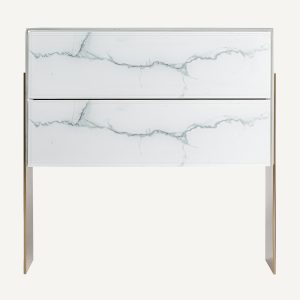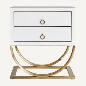 Mesita de noche Neva estilo art deco en color blanco y oro