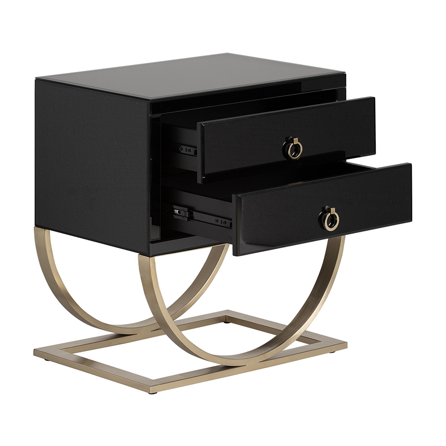 Mesita de noche Grabner estilo art deco en color negro y oro - Imagen 3