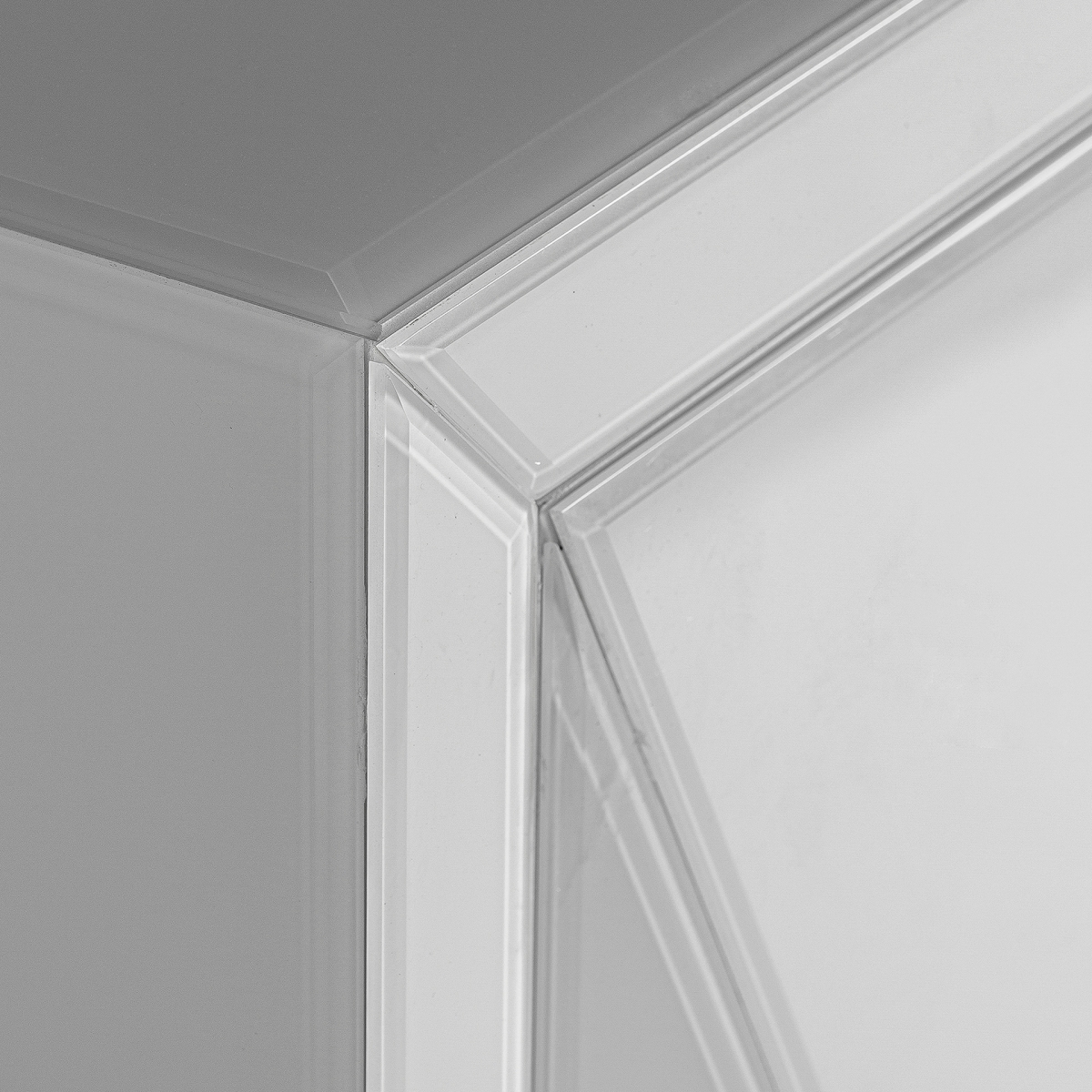 Mueble de televisión Molln, en color blanco/oro mate, de estilo art deco. Fabricado en acero, combinado con espejo.