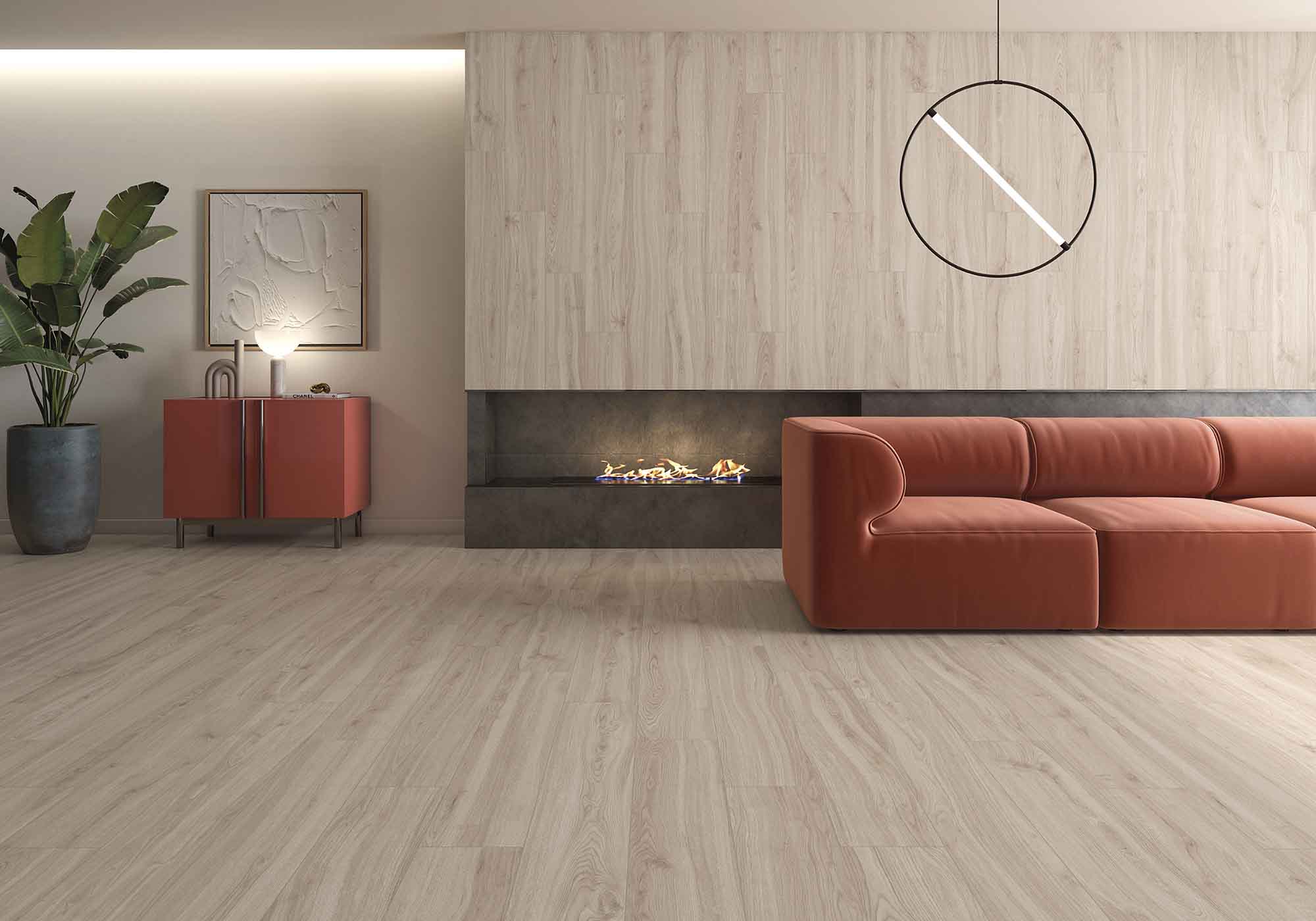 Pavimento porcelánico Madison disponible en Haya, Miel, Noce y Vainilla. Formatos disponibles: 25x150cm, 10x120cm.